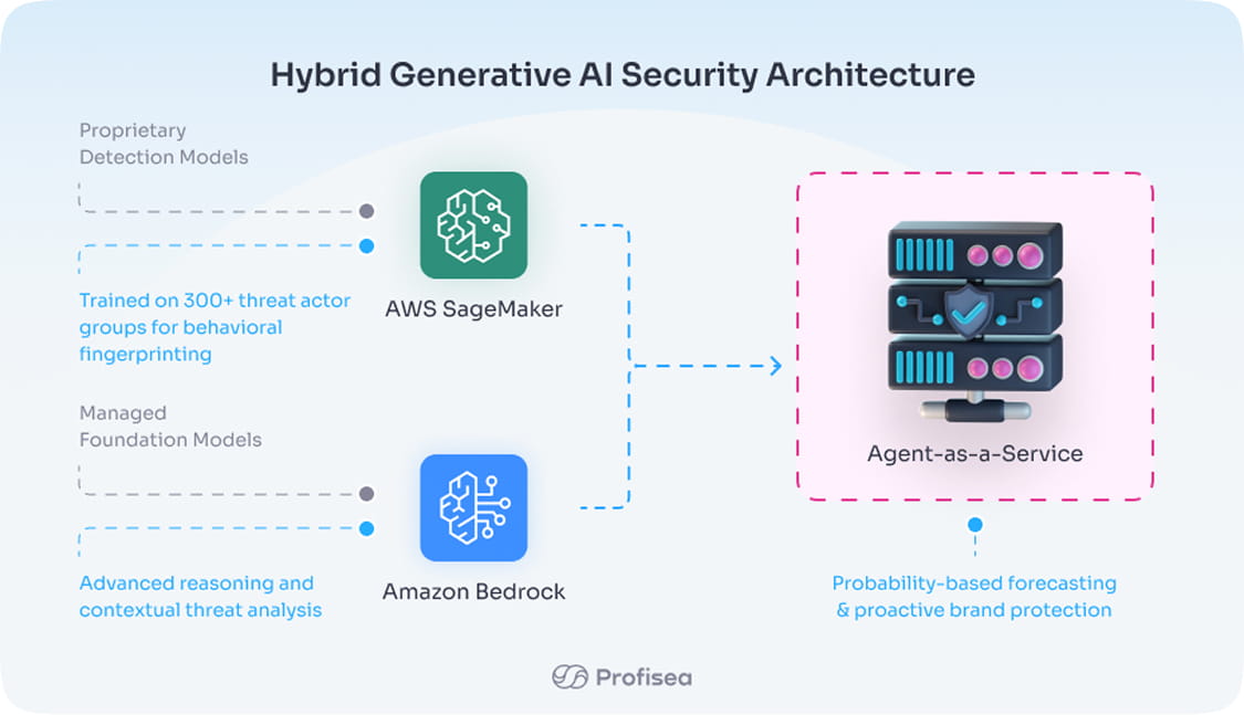 At the heart of the solution is a sophisticated hybrid AI architecture that seamlessly integrates proprietary cybersecurity models with managed foundation models.